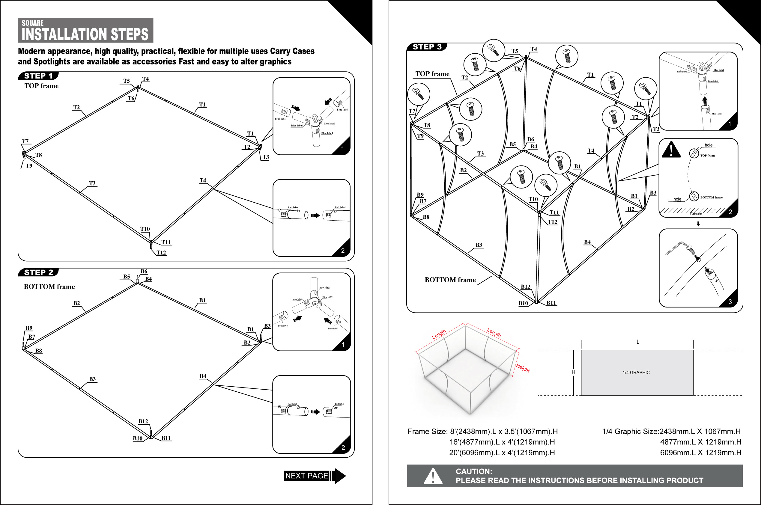 Pricing for additional sizes Double Sided Graphic package: Square 12' D x 24" H $ 3,302 Square 12' D x 32" H $ 3,428 Square 12' D x 36" H $ 3,553 Square 12' D x 42" H $ 3,719 Square 12' D x 48" H $ 4,130 Square 12' D x 60" H $ 5,558 Square 12' D x 72" H $ 6,694