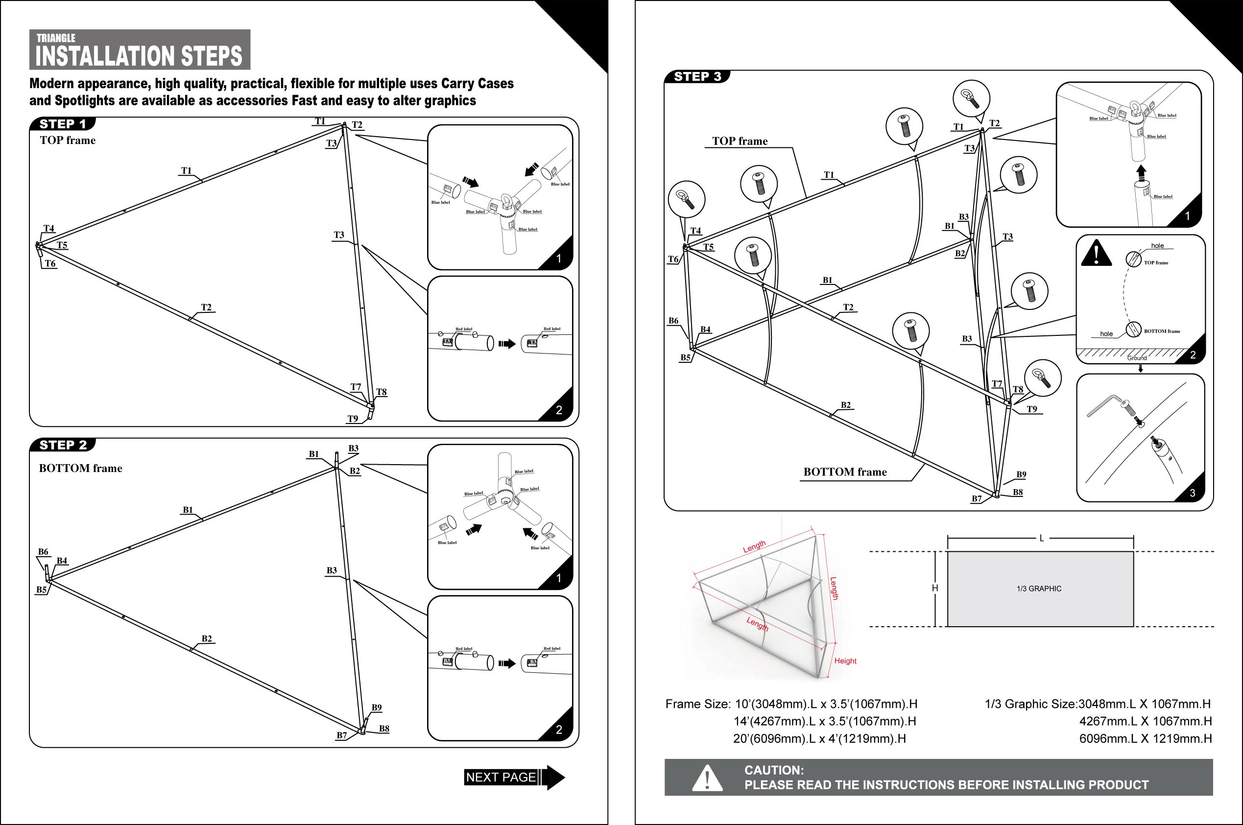 Product Details: Pricing for additional sizes Single Sided Graphic package: Triangle 12' D x 24" H $ 1,652 Triangle 12' D x 32" H $ 1,724 Triangle 12' D x 36" H $ 1,846 Triangle 12' D x 42" H $ 1,929 Triangle 12' D x 48" H $ 2,027 Triangle 12' D x 60" H $ 2,574 Triangle 12' D x 72" H $ 2,944 Please specify Black or White Fabric for inside.
