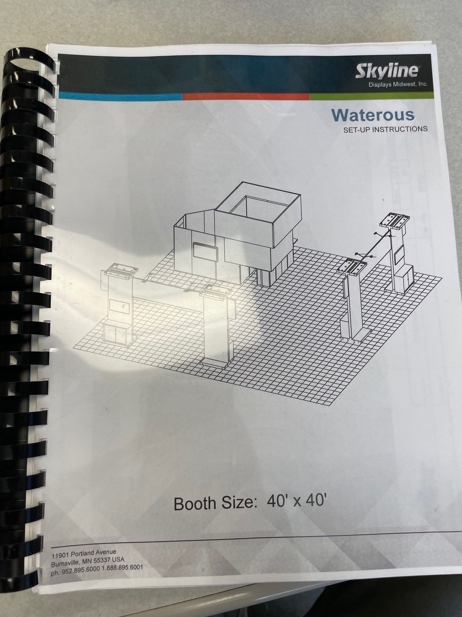 Four (4) towers each with a small counter and storage cabinet and lighting above. Towers can be linked together with a cross structure. Fabric signage is easily attached to the towers.